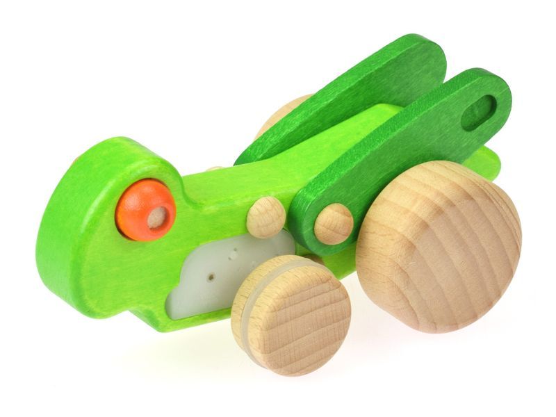Sicherlich kennst du ihn schon. Der kleine Grüne, der dir immer mal im Garten begegnet. Woran du ihn erkennst? Ganz einfach! Sein Zirpen ist kaum zu überhören und springen kann er. Nicht nur hoch sondern auch weit. Im Garten kannst du ihn sicherlich mal beobachten und staunen. Doch jetzt kann einer dieser kleinen Freunde auch in dein Kinderzimmer einziehen. Der BAJO Rückzieh-Grashüpfer aus hochwertigem Holz ist perfekt zum Spielen geeignet. Du kannst den kleinen Grashüpfer ganz einfach aufziehen, indem du ihn nach hinten ziehst. Lässt du ihn los, dann wirst du sehen wie schnell der Grashüpfer durch dein Zimmer flitzen kann. Beim Fahren bewegt er seine kleinen Beinchen abwechseln nach oben. Das sieht lustig aus und bringt bestimmt alle zum Lachen. Die kleine Heuschrecke ist bereits für Kinder ab 3 Jahren geeignet. Beim Spielen und Aufziehen wird besonders die Auge-Hand-Koordination und Feinmotorik. gefördert. Gleichzeitig lernen die Kinder dabei den Zusammenhang von Aktion und Reaktion: Wie weit fährt der kleine Grashüpfer, wenn ich ihn wie weit aufziehe? Die Fertigung aus hochwertigem Holz und die abgerundeten Ecken machen ihn sehr robust und perfekt für Kinderhände. Der Grashüpfer kann auch super mit aus Ausflüge genommen werden, denn dank seiner Größe passt er perfekt in jede Tasche. Die Vorderräder sind außerdem mit einem Gummi-Ring verstärkt, so dass der Grashüpfer gut aufgezogen werden kann. Beim Fahren und Aufziehen hinterlässt er so keine Spuren und Kratzer auf dem Boden oder Tischen. Nachhaltig und ökologisch in Polen hergestellt, aus hochwertigem Holz. Mit sicheren Farben bemalt!